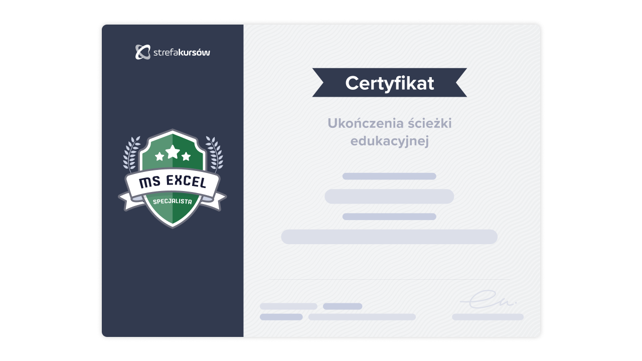 Po ukończeniu ścieżki kariery czeka na Ciebie egzamin certyfikujący, którego pomyślne rozwiązanie pozwoli Ci uzyskać imienny Certyfikat Specjalisty. To potwierdzenie Twojego uczestnictwa w szkoleniu i zdobytych umiejętności. Możesz dołączyć go do CV, profilu na LinkedIn lub udostępnić w mediach społecznościowych.